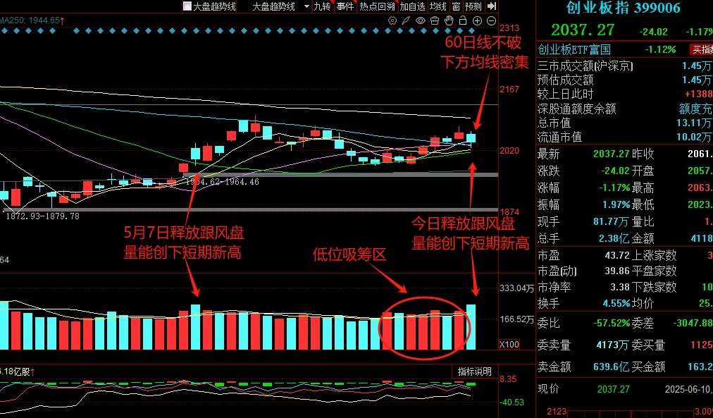 明天的关键点在于不能创新低,如果明天守不住之前的突破转强位2030点,那么就还有回踩2000点整数关口的可能性。今天急跌或者尾盘有过加仓操作的投资者,建议明天有冲高机会可以考虑先把加仓筹码T出。创业板对于60日均线的突破都是三次才成功,那么半年线的位置自然也不大可能一蹴而就,冲高回落仍然会是后续的常态。若明日能重新站回5日线或者2050上方,那么就可以考虑等待反包后的再次上攻才开始减仓。