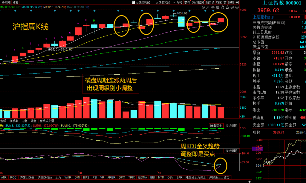以周K线角度来看,3921的10周线压力突破,自11月底跌穿之后,这条均线狠狠压制了沪指4周,本周算是暂时收回。根据过往的突破节奏,后续不可能马上就脱离这条均线的牵引,直接令乖离率提升,必然还会反复测试突破的有效性,尤其是现在挨边2万亿的量能结构下,就震荡模式为主。