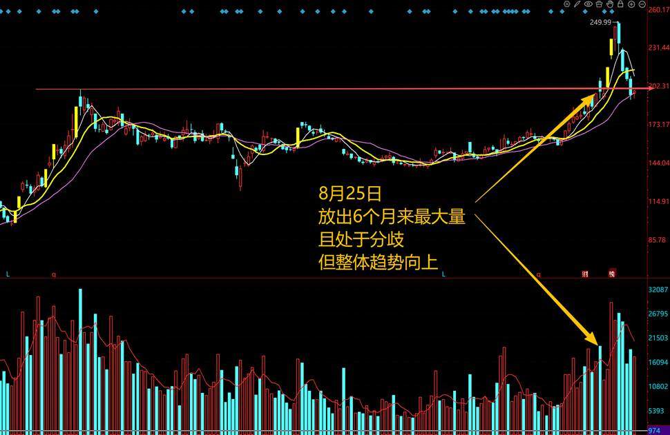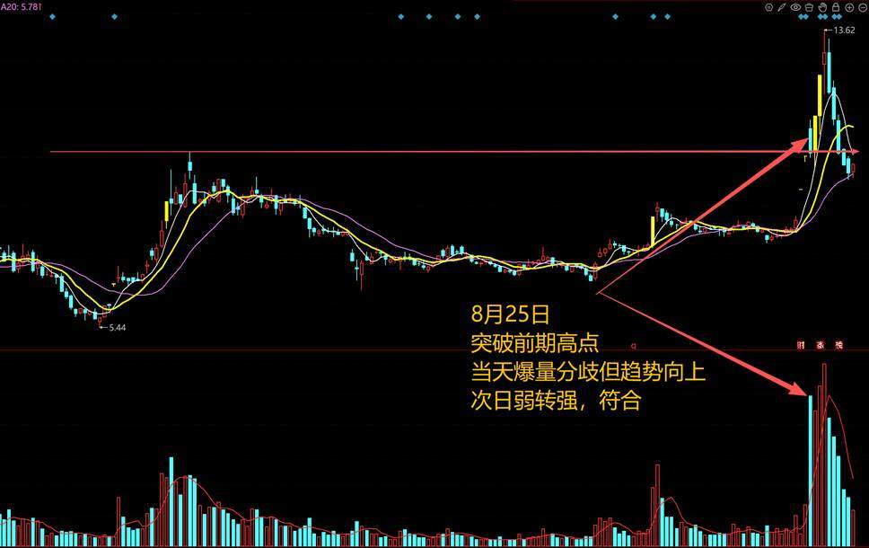 筛选:8月25日,突破前期高点,当天爆量分歧,但趋势仍旧保持向上。