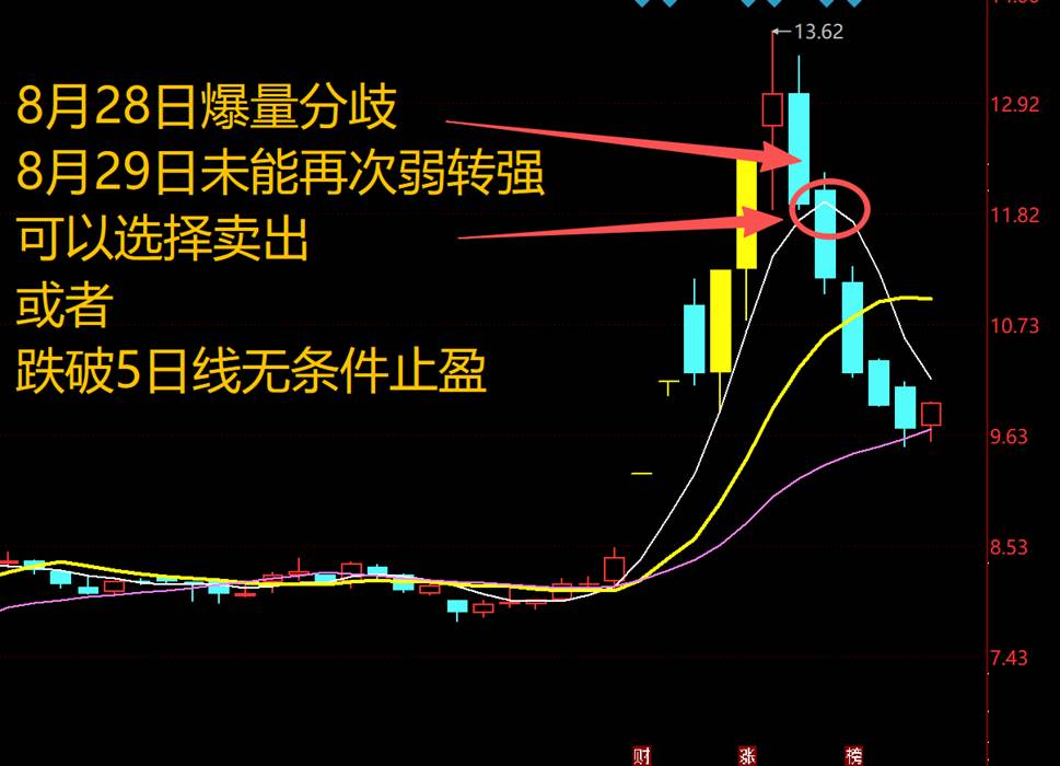 8月28日,主升途中再次爆量分歧,次日未能再次弱转强,可以主动卖出