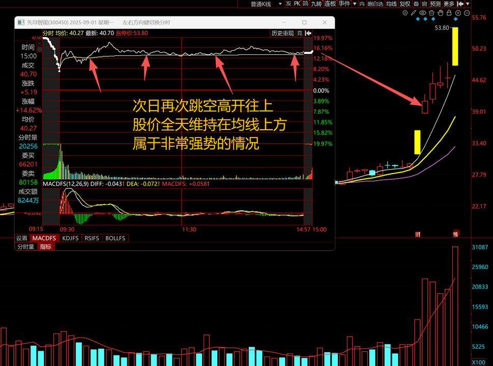 次日再次跳空高开往上,股价全天维持在日内均价上方。