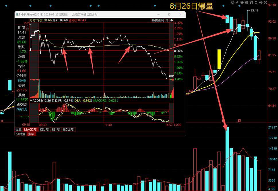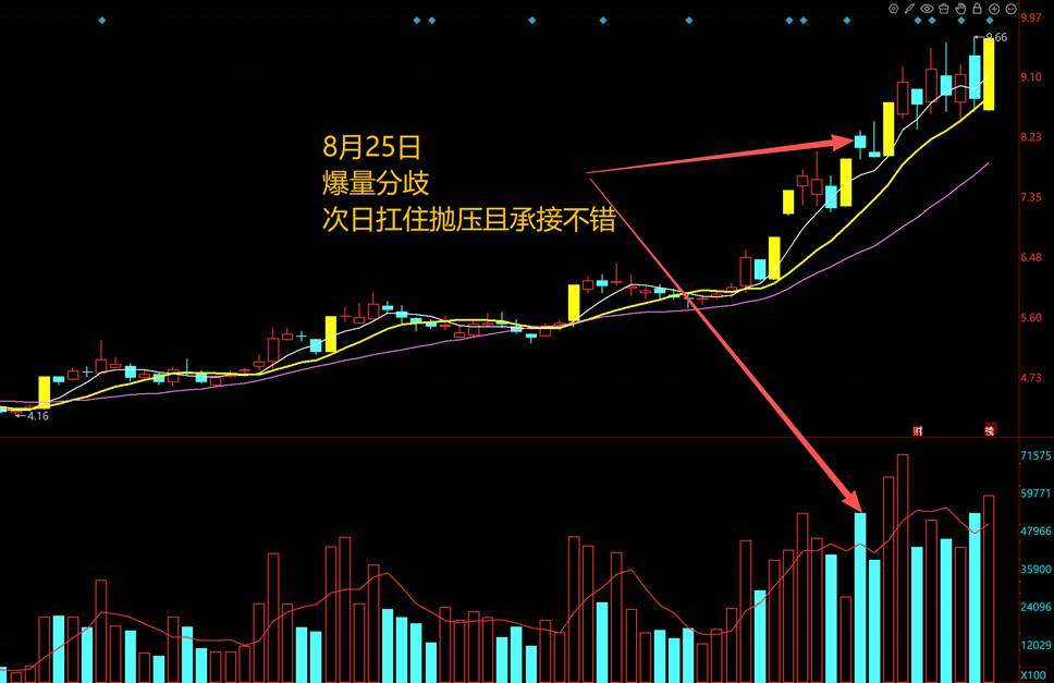 8月26日爆量,次日开盘扛住了抛压,但尾盘回落,但次日仍有修复,如果次日考虑保守的策略卖出的话,是不会亏钱的。