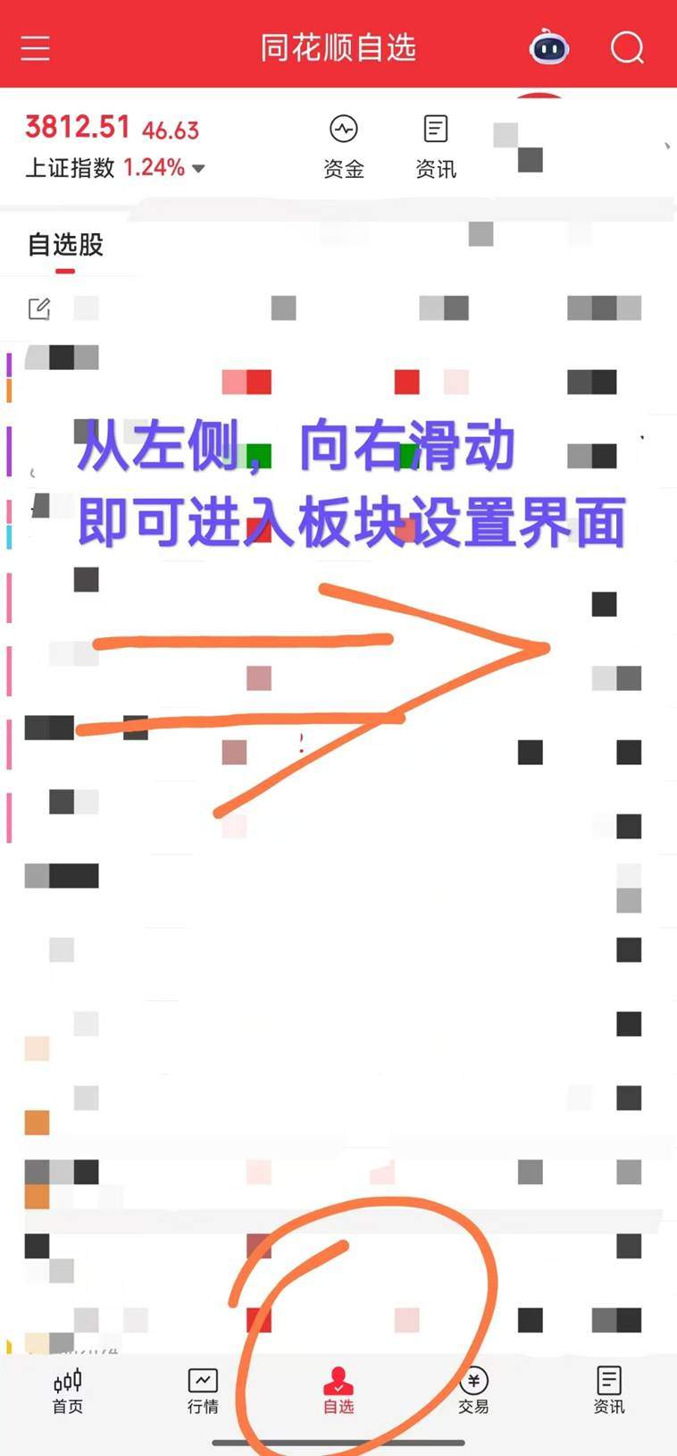 第一步:进入“自选股”界面,从左侧往右侧滑动,即可进入“板块设置界面”