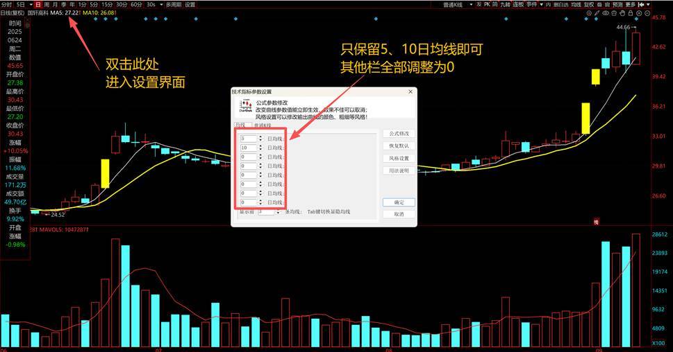 新手小白,只看两条均线:5日线,10日线,这两条线会在后期的案例中无数次提及,尤其是5日线。