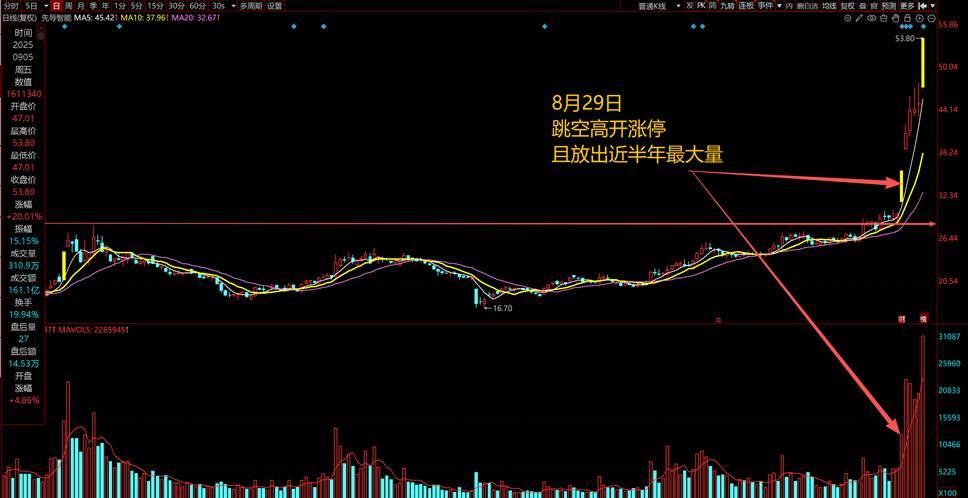 8月29日,跳空高开,一路拉升至涨停,放出半年来最大量,且与国轩高科一并带动了整个固态电池板块启动。