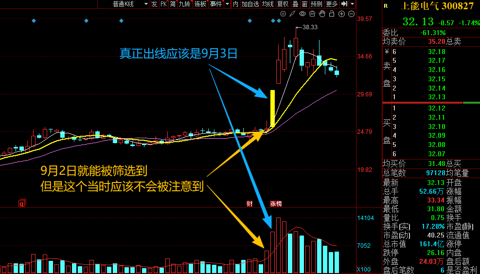 9月2日,已经可以被选股条件找到,但是当时一般不太会关注得到,因为缺乏辨识度。