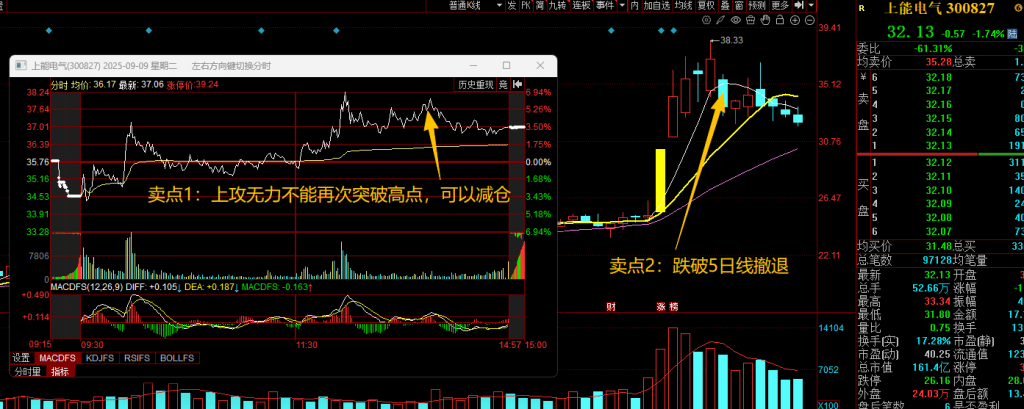 9月10日,开盘不及预期,未能持续上攻,跌破5日线即可离场。