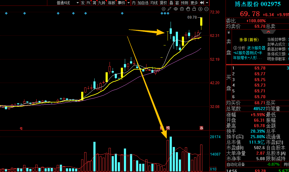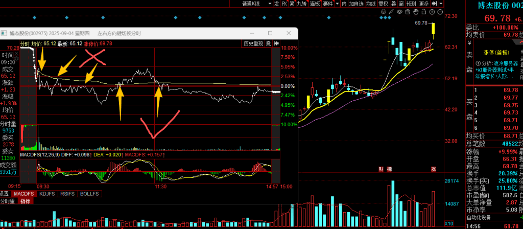 案例1:博杰股份,液冷的补涨龙头,9月3号爆量分歧,次日弱转强。