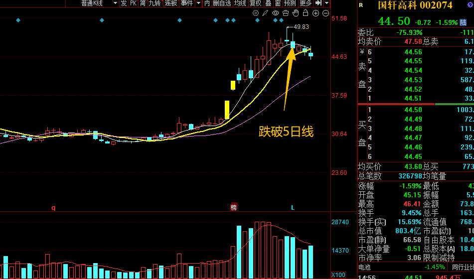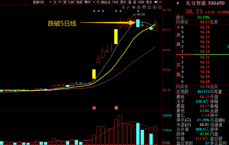 次日开盘就往下摁,跌破5日线时应该是要考虑及时止损的。
