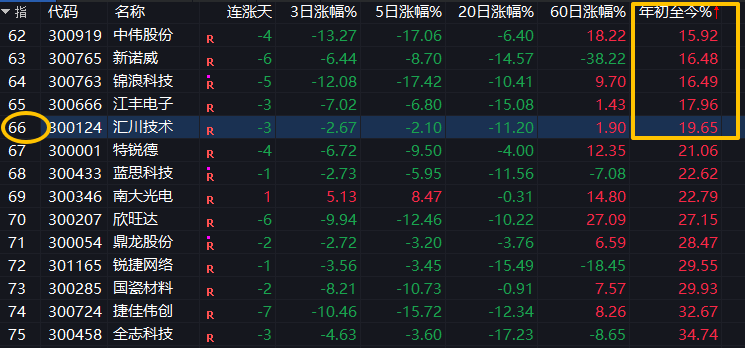 创业板也是,100只成分股中有66只六成多的个股跑不赢大盘指数。