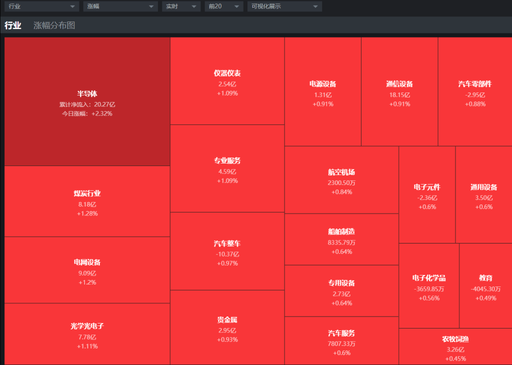 【热点板块】今日板块热力图来看,涨幅靠前的是半导体、煤炭行业、电网设备、光学光电子、仪器仪表、专业服务、汽车整车、贵金属等。四维分析来看,今日行业板块有51个上涨,领涨的是半导体板块涨幅超过2%,其他板块反弹力度都是比较弱的,下跌板块有35个,个股来看,两市上涨家数是2545家,涨停70家,下跌家数是2573家,跌停25家,个股涨跌比达到了1:1形成暂时的平衡,涨停数量70家大部分也是都北交所的个股,非北证的涨停并不是很多,而跌停达到了25家,跌停的大部分都是中小创的品种,短期涨幅较大品种开始快速补跌。今日盘中活跃的板块是十分混乱的,数据要素、煤炭、农业、核电、专业服务等,这几个板块都没有什么联系,早盘主要是汽车相关板块领涨,汽车板块利好消息不断刺激,华为汽车、小米汽车、今天是华为和长安合作,又是刺激了一把,表现最强的还是汽车零部件板块,再次刷新了历史新高,而这里需要注意的是里面涨停的大部分也都是北交所的个股,整个汽车板块资金炒作鱼龙混杂,这个阶段操作难度非常大,需要注意一下。而下午领涨的主线是半导体板块,这是资金回归到主流的趋势,板块的炒作还是要围绕中期主线进行的,这样才能有利于带到市场赚钱效应,下一个阶段半导体、科技等方向能否持续走强也是关键点。