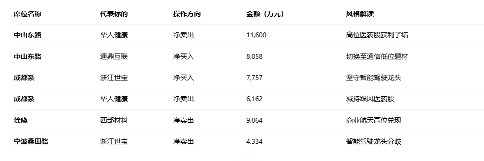 获中山东路大幅买入8058万元,成为游资从医药股切换至通信板块的代表性操作,资金尝试在低位题材中寻找新突破口。