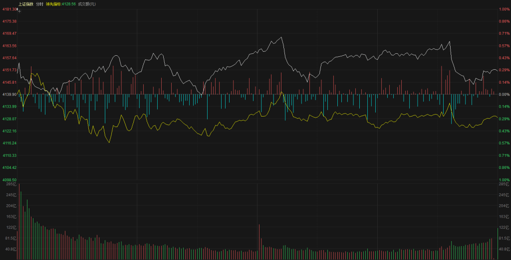 市场观察】上证指数高开4150点,开盘之后黄白线再次出现分化,近几个交易日都是分化状态,黄白线很难形成同步反弹,开盘之后黄线开始震荡下行、而白线震荡上行,10:30之后资金开始进行修复、资金有意识的稳住黄线,10:30之后黄线形成弱势低位震荡,而白线分时走势又出现了反复拉扯的阶段,特别是期指分时走势很明显,这种已经多次出现、资金在宽基ETF指数激烈争夺,最终上证指数报收4151点,上涨0.27%,创业板开盘下行之后、维持低位震荡,最终报收3323点,下跌0.57%。