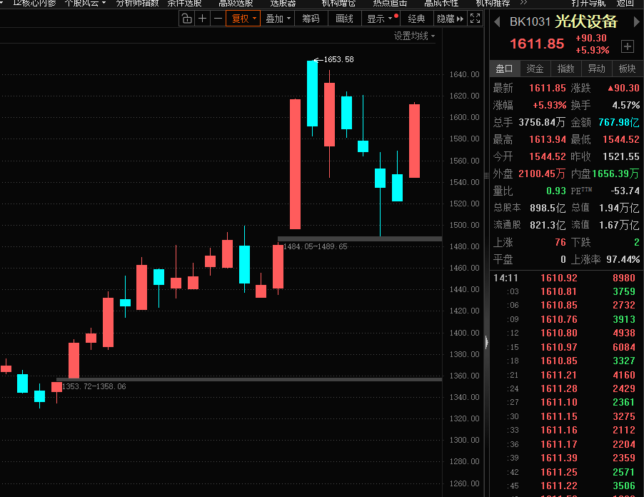 整体保持上升趋势,技术面和基本面来看都是形式一片大好,整体来看价值明显。但是操作上不能盲目,这里要注意几个问题,大盘震荡资金有所疲软,而且政策性降温对于股价的打击是毋庸置疑的;第二:板块上保持火热,很多个股连续上涨之后缺乏上手机会,而且一旦过热就容易引发空头的反扑,所以操作上不可盲目,不可追高,如果有持有的可以继续顺趋势,而开新仓,短线可以等回调企稳,激进的想找进攻的可以降低维度;中期可以关注低位标的,对于低位尚未出现明显获利可以先加自选,等待信号再说。