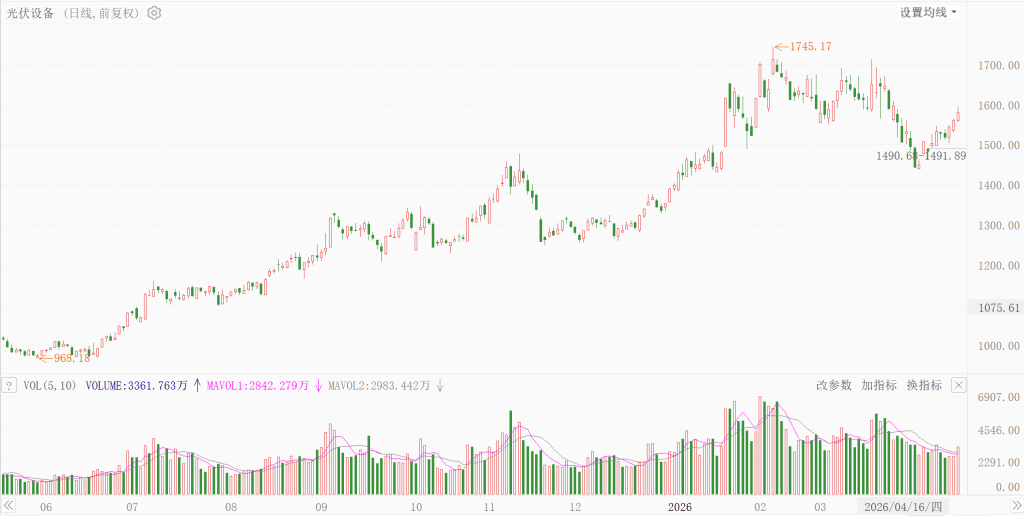 技术上来看整体位置不高,大周期来看还处于前期的底部区间,中周期来看整体属于上升趋势,小节奏回调之后止跌再度反弹,所以资金是青睐光伏的,而且叠加政策面、基本面的驱动,是有望形成三剑合一的,只是个股操作上要注意区分自己的周期,长期就好拿得住,中期要注意降成本,短期要注意看信号,找准自己的周期再进行操作。