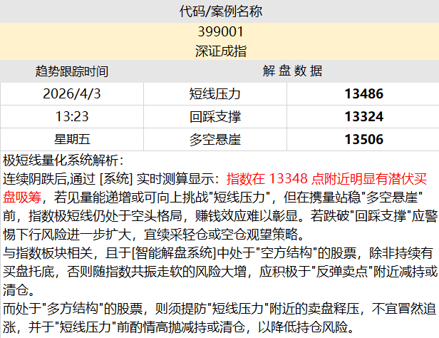 量化智能解盘:【深证成指】