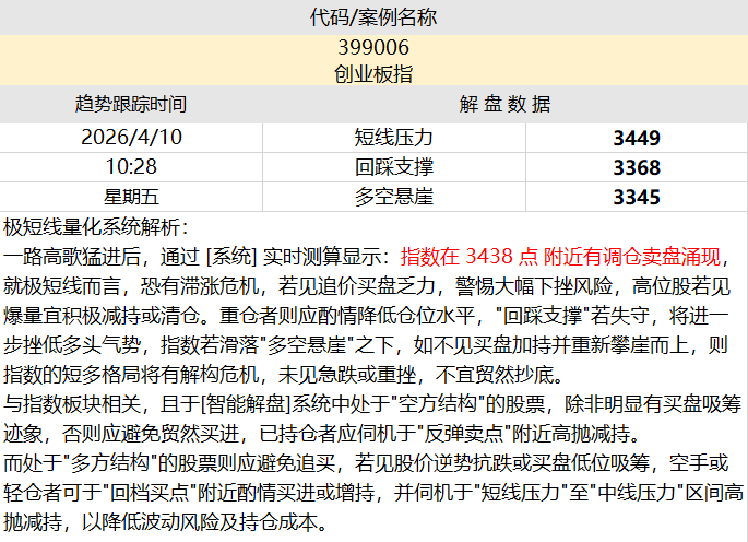 量化智能解盘:【创业板指】