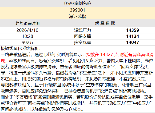 量化智能解盘:【深证成指】