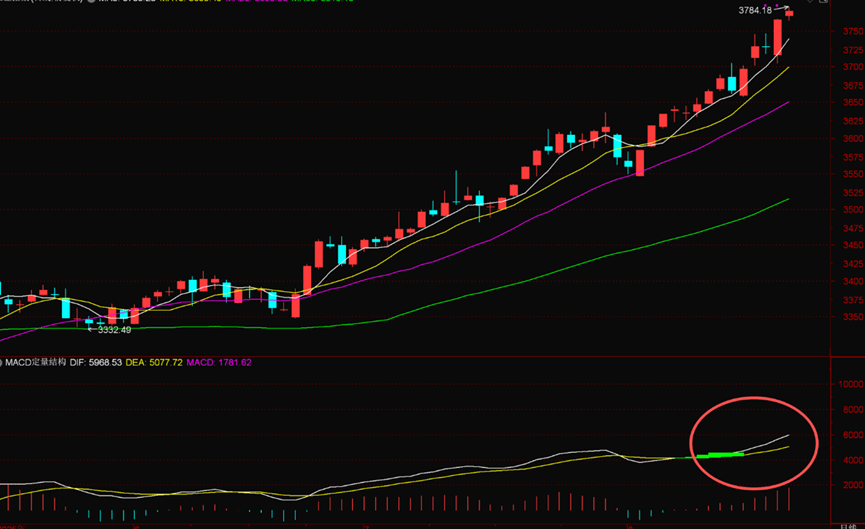 由于目前上证指数日线和120分钟周期都没有顶部结构和指标新的钝化现象出现,所以大盘仍将继续上行,目前江恩角度6*1与6124和5178连线基本重合。所以大盘这波空间应该是奔着上方大级别突破去的。预计月末和下月初就有望到达。指数层面不存在问题。