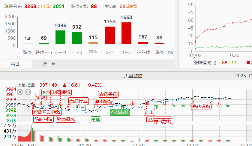 今天整个盘面,热点还是偏向于快速轮动的状态,AI应用昙花一现,海南板块冷饭热炒,商业航天、可控核聚变、量子通信等十五五规划题材,盘中也都有资金点火,玄学“马字辈”也来凑热闹,但持续性都不强。操作上不能追高,逢低吸纳才是最优解。