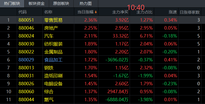 今天上午市场进一步展现出向好态势,但本质上仍未改变震荡行情的属性。从分时图来看,几大指数均呈现出较强的上攻劲头。以沪指分时为例,不仅指数白线强势走高,代表个股的黄线更是走势迅猛,这一现象充分反映出今日无论是指数还是个股,都实现了较好的修复。
