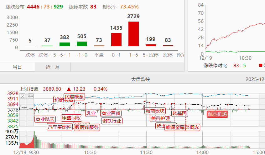 热点板块看,今天没有绝对的主线,早盘受外围消息刺激,可控核聚变方向异动,但是整体力度比较一般,消费方向10点之后有所加强,主要受新名词“犒赏经济”的带动,和之前炒作的IP经济、悦己经济、谷子经济没什么区别,换汤不换药,还是哪些票,换个吹法。消费方向整体还有预期,因为年关将至,历来有炒消费的习惯,而且近期文件不断,高层对消费重视度较高,加上海南封关,对消费也是刺激,可以逢低继续关注绩优股的表现。